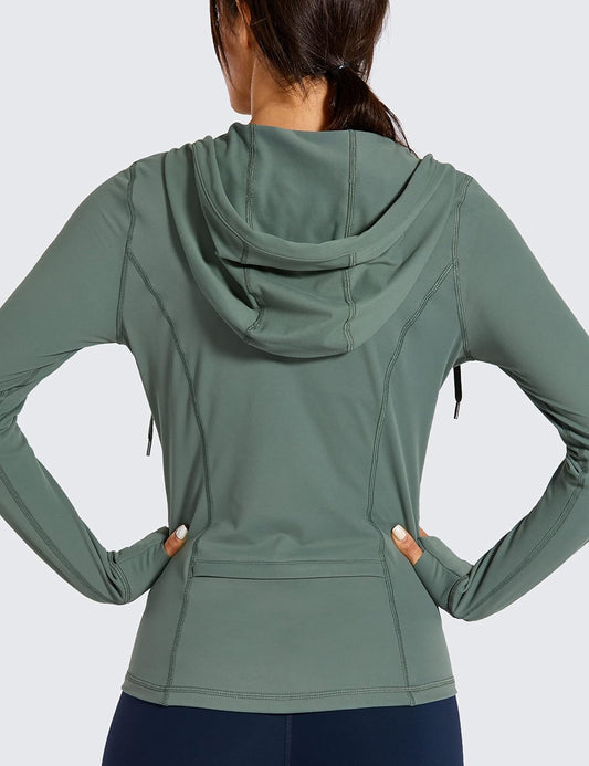 CRZ YOGA Women'S Brushed Full Zip Hoodie Jacket Sportswear Hooded Workout Track Running Jacket with Zip Pockets