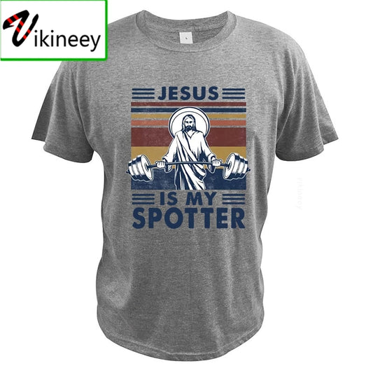 Jesus Is My Spotter T Shirt Gym Workout Weightlifting God Christian Vintage Funny 100% Cotton Summer Clothing
