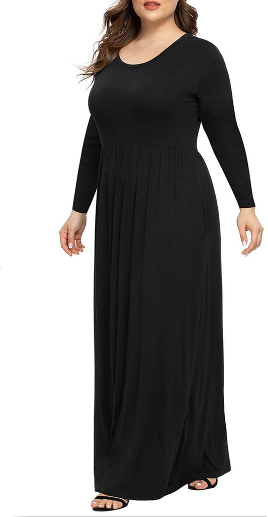 LONGYUAN Women's Plus Size Maxi Dresses for Curvy Figures, Casual Long Dress in Sizes XL-6XL